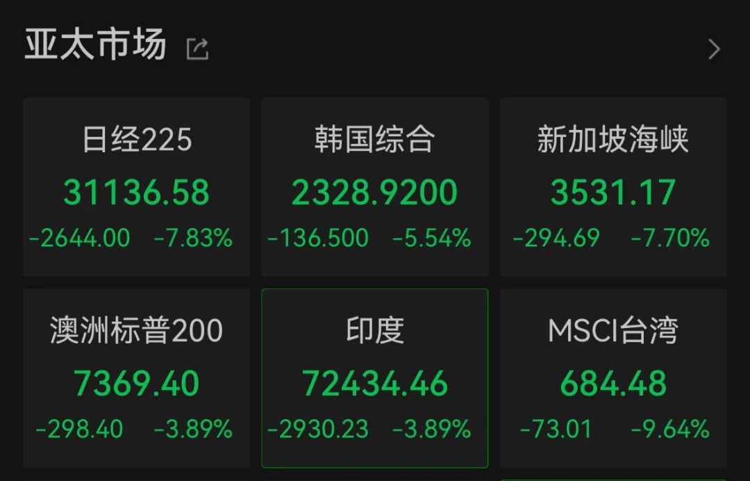 The plunge in the stock markets of Japan and South Korea triggered the "circuit breaker mechanism". Due to the large number of sell orders for Nikkei 225 Index and Topix Index futures, the Osaka Exchange activated the "circuit breaker mechanism" from 8:45 local time, temporarily suspending Nikkei 225 Index futures trading for 10 minutes, which is the first time since August 2012 that the exchange has launched this measure. South Korean stocks also urgently suspended programmatic sell orders in the KOSPI market after a sharp decline.